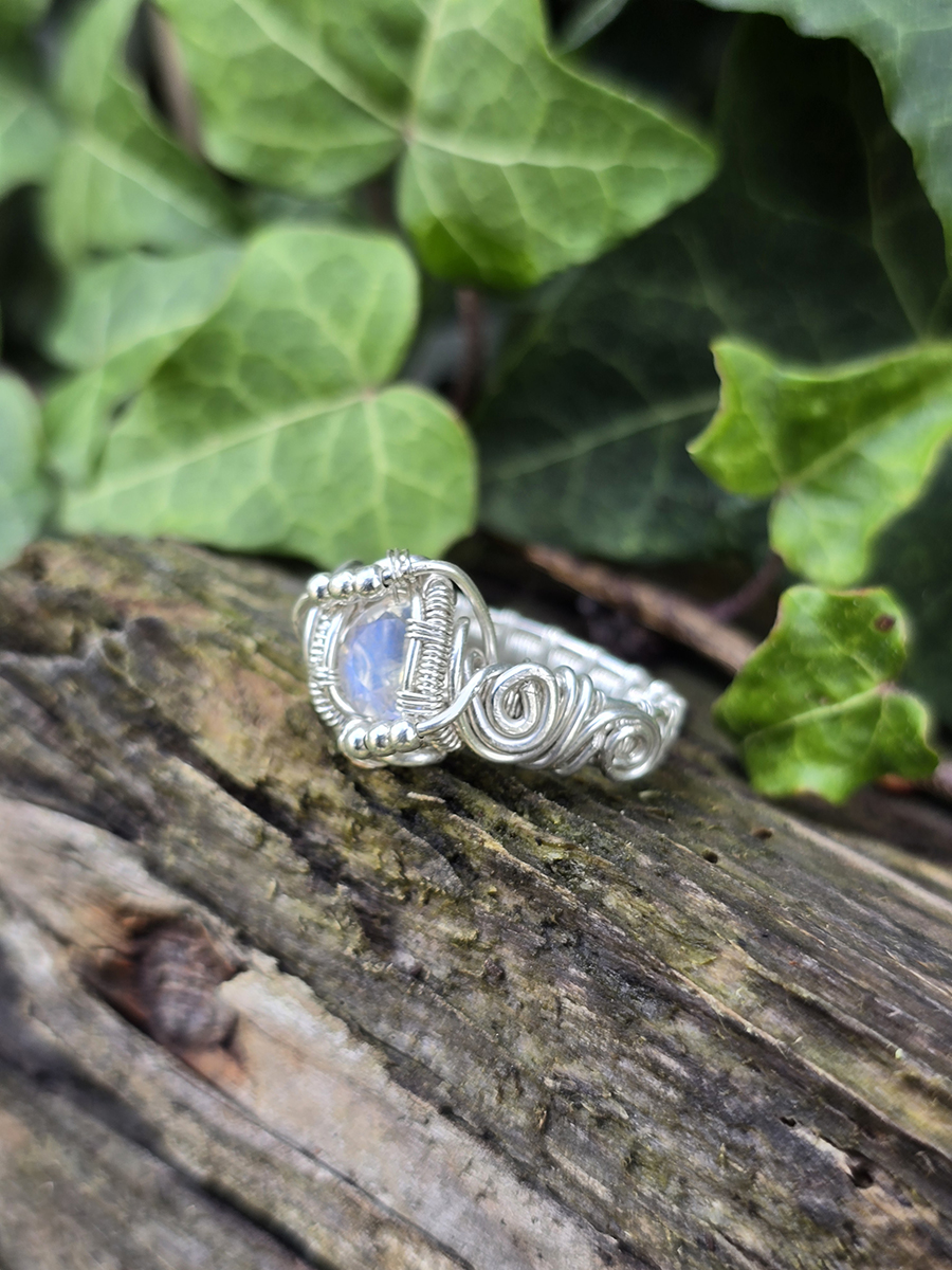 Bague en argent et péristérite taillée